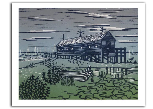 Packing Shed with a grey and green gradient background. Card is 18 x 13 centimetres and comes with envelope.