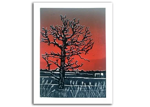 Tree in the sunrise at Abberton Reservoir. Card is 18 x 13 centimetres, supplied with envelope.